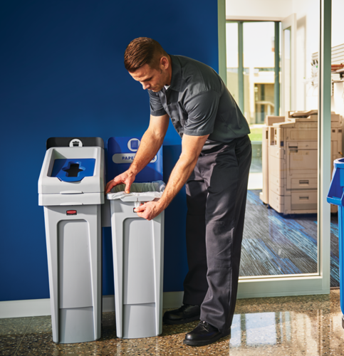 With facility managers looking at the sustainability practices of their sites as a whole, administrative areas, canteens and staff rooms must also be considered. Here the need for a system that ensures the effective separation of waste without compromising space is key. Supporting your staff with modular solutions that allow them to easily separate their waste in the streams that are relevant to your business, avoiding cross-contamination, will save you money and improve your businesses’ green credentials. Take our Slim Jim® Recycling Stations, for example. Discreet, space-efficient and customisable to suit each area of your facility, they can be the key to dramatically increasing your recycling rates, helping you to meet environmental targets, and make financial savings relating to waste disposal. Take top logistics company, DPD, after integrating Slim Jim ® Recycling Stations they cut their costs by 27% by not sending waste to general disposal and were able to take their recycling efficiency rate to over 90%.