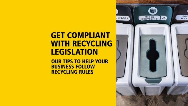 The new legislation requires dry recyclable materials, such as glass bottles, drinks cans, food containers, paper and cardboard, food waste and eventually (from March 2027) plastic film to be separated from general waste. In order to be compliant, businesses must ensure that they are separating these waste streams.