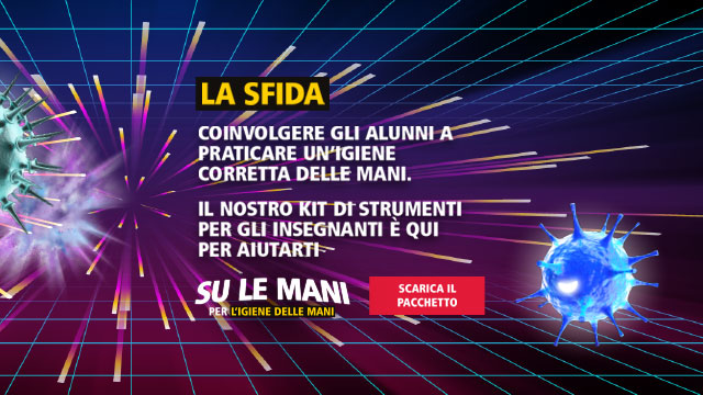 Abbiamo una missione: promuovere l’igiene delle mani a scuola. Partecipa alla missione: aiutaci a trasmettere abitudini sane alla nuova generazione.